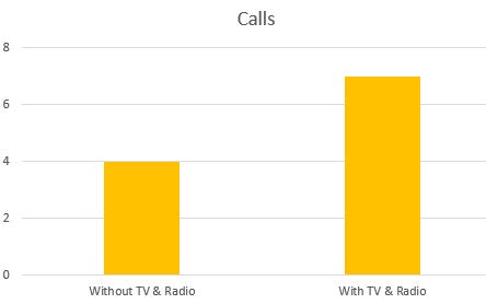 In another example, a local HVAC company ran a digital marketing campaign (paid search, online display and video) in conjunction with a traditional media campaign of broadcast radio and TV. During the time traditional media was running, the paid search campaign had an 11.69% increase in visits/clicks and a 75% increase in calls.